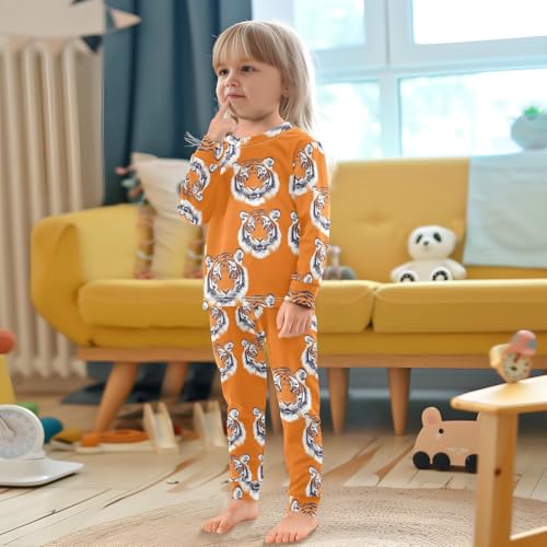 Pajama Sets Long Sleeve Tiger Faces on Orange Soft Comfy Sleepwear 2 Piece PJS 3-8T 2