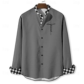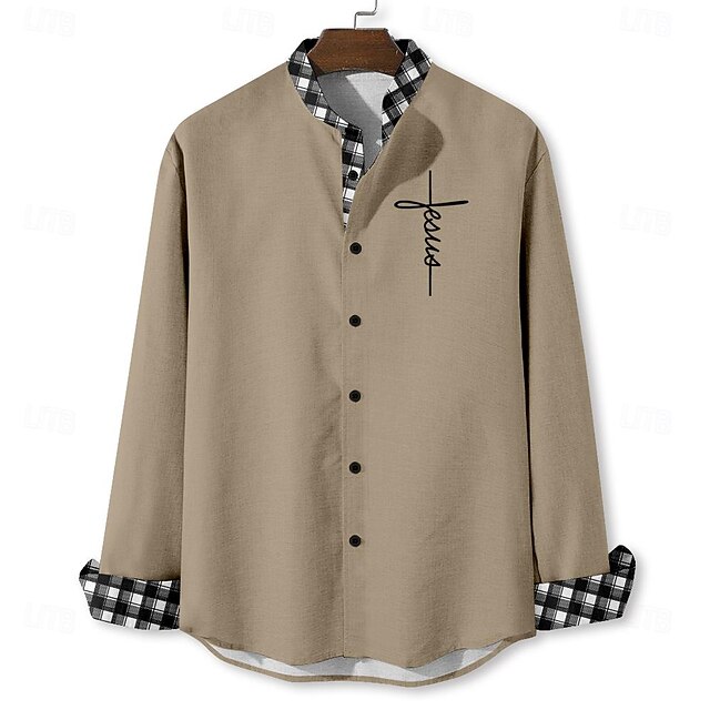 Highlights [Fabric] : Crafted from high-quality polyester, this long-sleeve men's shirt provides a lightweight and breathable fabric perfect for the transitional seasons of summer, spring, and fall. Despite its thin material, the fabric is durable, ensuring lasting wear through various occasions. [Fit and Style] : Designed with a regular fit, this vintage-inspired, casual shirt seamlessly balances comfort and style. The button-up structure makes it easy to wear and equally suitable for both daily wear and vacation outings. [Design Highlights] : Featuring a striking 3D print pattern centered around a "Jesus" motif, the shirt stands out with its unique visual appeal. The mandarin collar enhances its modern aesthetic, while the black buttons add a cohesive touch to the overall design. The inner collar and cuffs boast a black and white checkered detail, offering a stylish accent when the cuffs are turned up. [Occasions] : Ideal for a wide range of occasions, this shirt transitions effortlessly from a casual day out to a more polished vacation look. Its versatile design allows for easy pairing with different outfits, making it an essential addition to any wardrobe looking for a touch of individuality and flair. [Size Range] : Available in a comprehensive size range from S to 3XL, this shirt accommodates a variety of body types, providing options for a tailored fit that suits different preferences.