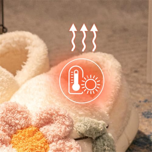 Epsion Plush Floral Cotton Slippers for Women Indoor Non-slip Home Thick Bottom Shoes 4