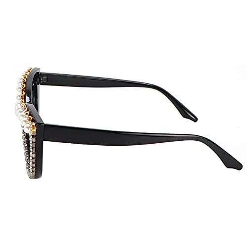 Oversized Cat Eye Sunglasses for Women Handmade Rhinestone Pearl Plastic Frame 1