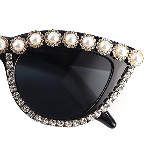 Oversized Cat Eye Sunglasses for Women Handmade Rhinestone Pearl Plastic Frame 5