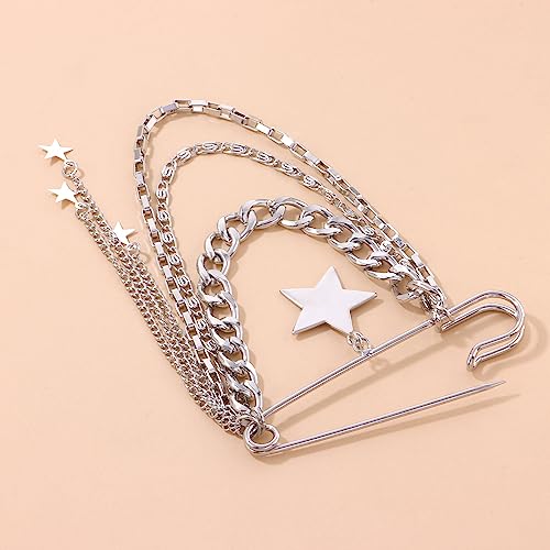 Vintage Safety Pin Brooch for Layered Chain Tassel Decorative Pins for Lapel, Sweater, Hat, Scarf, Shawl - Cute Y2K Grunge Punk Style 5