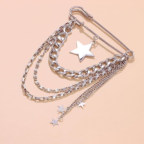 Vintage Safety Pin Brooch for Layered Chain Tassel Decorative Pins for Lapel, Sweater, Hat, Scarf, Shawl - Cute Y2K Grunge Punk Style 4