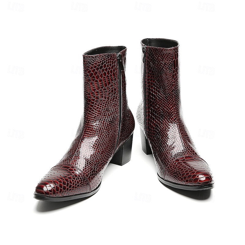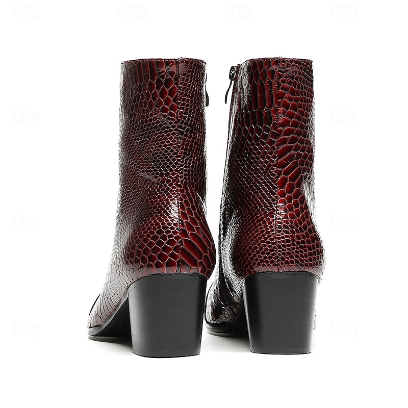 More information about Men's Genuine Leather Burgundy Crocodile Pattern Zipper Boots – Retro Ankle Boots for Business, Evening Parties and Special Occasions