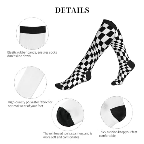 More information about Wavy Checkered Black White Checkerboard Compression Socks For Women Men Knee High Running Socks For Running