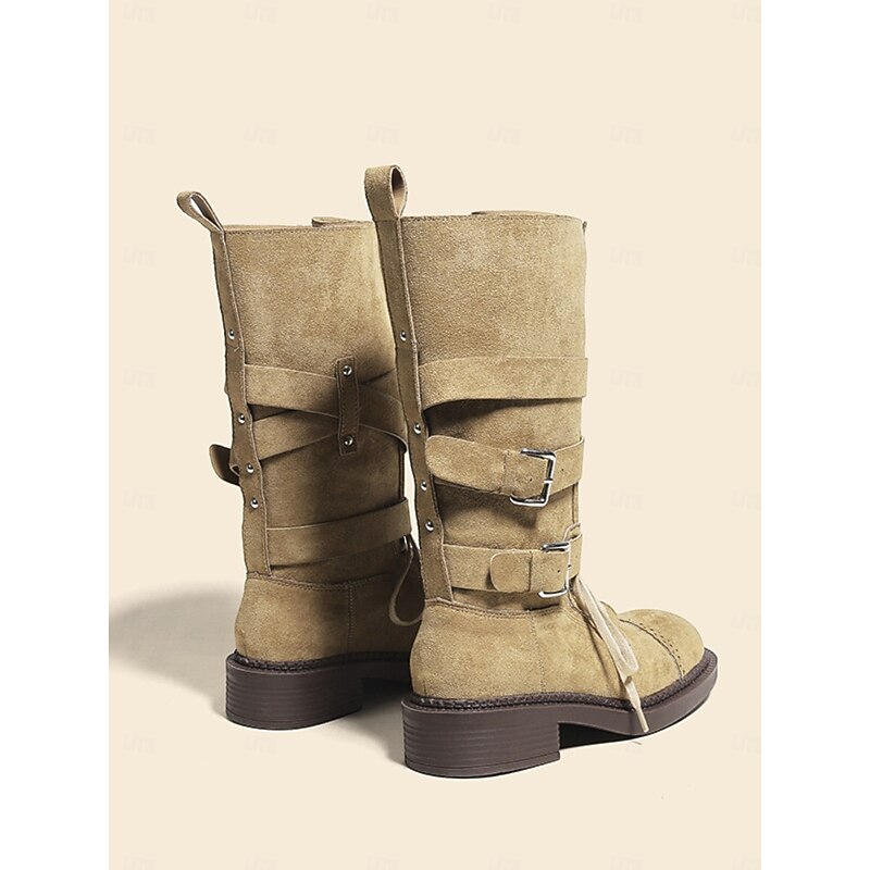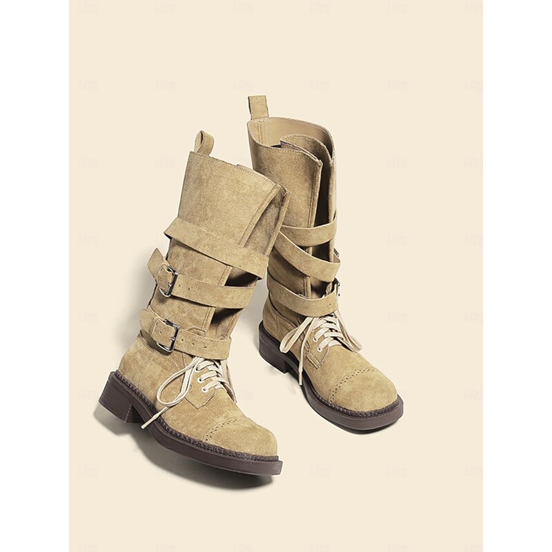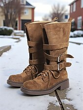 Women's Brown Suede Military Style Ankle Boots with Buckle Straps and Lace-Up Closure for Casual and Outdoor Activities 4