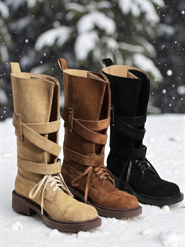Women's Brown Suede Military Style Ankle Boots with Buckle Straps and Lace-Up Closure for Casual and Outdoor Activities 12