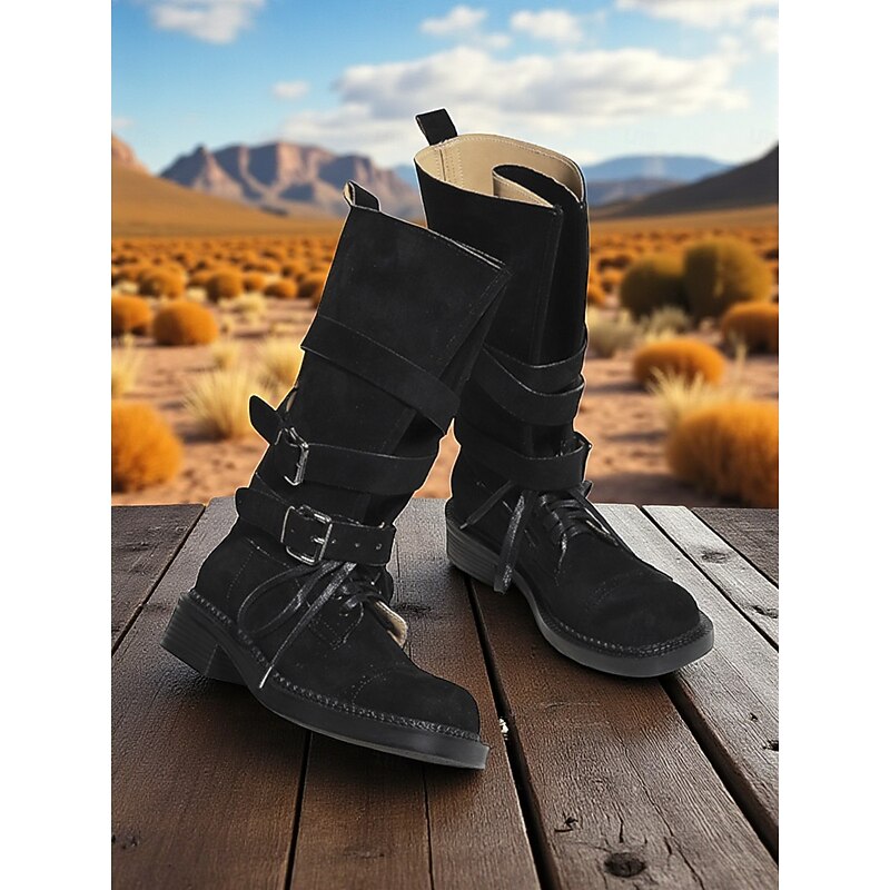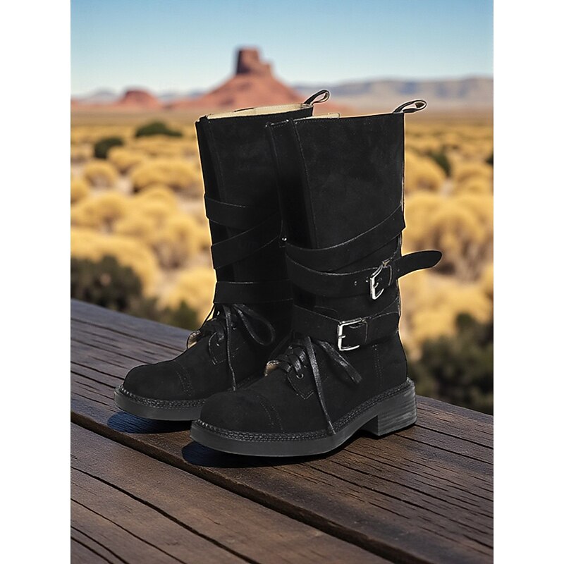 Highlights - Luxurious microbial leather upper materials - Stylish synthetic leather lining - Fashionable buckle embellishment - Classic round toe shape - Durable rubber outsole - Stay on trend with combat boots in 2025