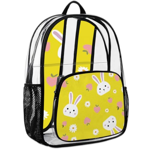Bunny Peach Blossom Clear Backpack Stadium Approved PVC Backpacks for Adults Heavy Duty Clear Bag for Work Security Travel College