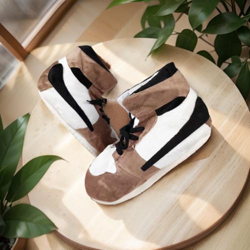 MOLERFO High Top Sneaker Slippers Unisex One-Size Ultra Comfy and Cozy House Fluffy Jordan Like Slippers for Men and Women (Brown,4,12) 6