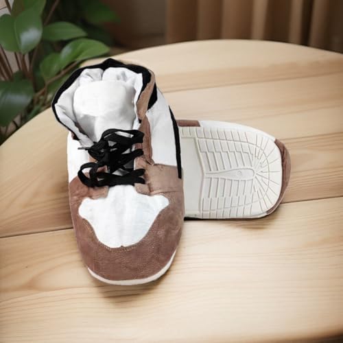 HOT ! MOLERFO High Top Sneaker Slippers Unisex One-Size Ultra Comfy and Cozy House Fluffy Jordan Like Slippers for Men and Women (Brown,4,12)