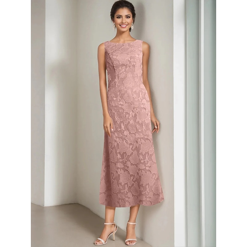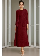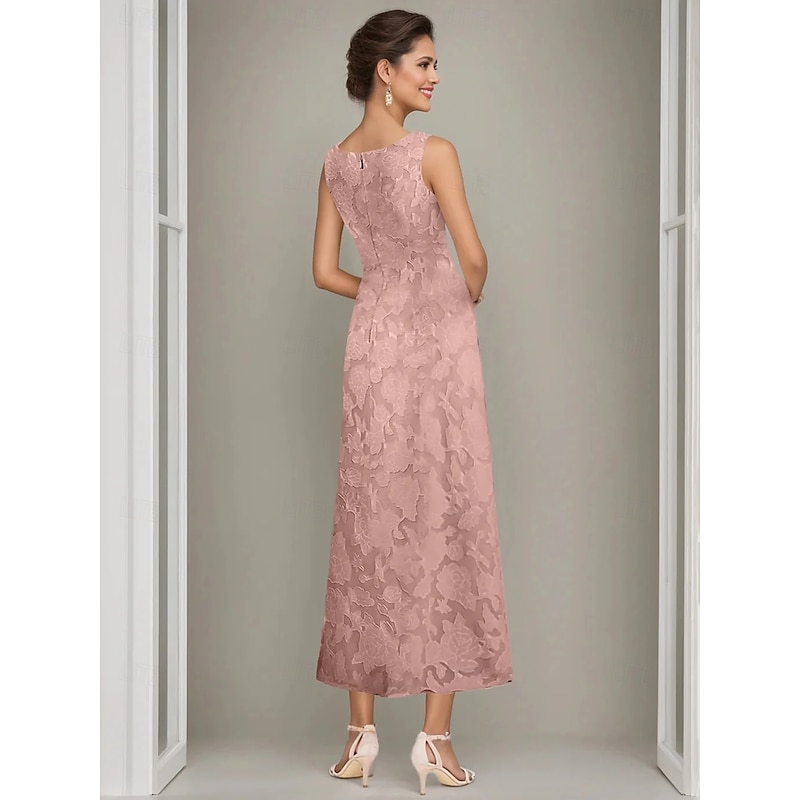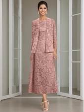 More information about Blue Pink Two Piece A-Line Dress Sets Mother of the Bride Dress Elegant Crew Neck Ankle Length Chiffon Lace Long Sleeve with Solid Color