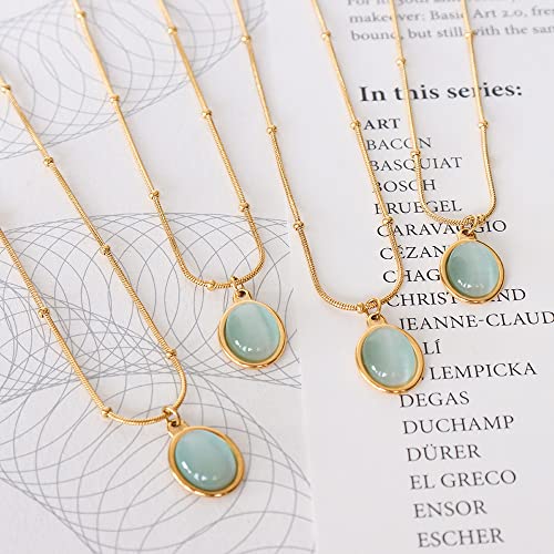 • 【MATERIAL OF TRENDY NECKLACE】 Made of supreme stainless steel with green created opal, 18k real gold plated, lead on the house, nickel free and hypoallergenic, no harm to sensitive skin.
