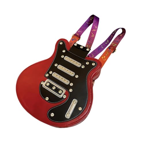 Women Guitar Shaped Backpack Summer Accessories Rucksack for Work Camping Travel, Red 5