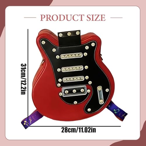 Women Guitar Shaped Backpack Summer Accessories Rucksack for Work Camping Travel, Red 7