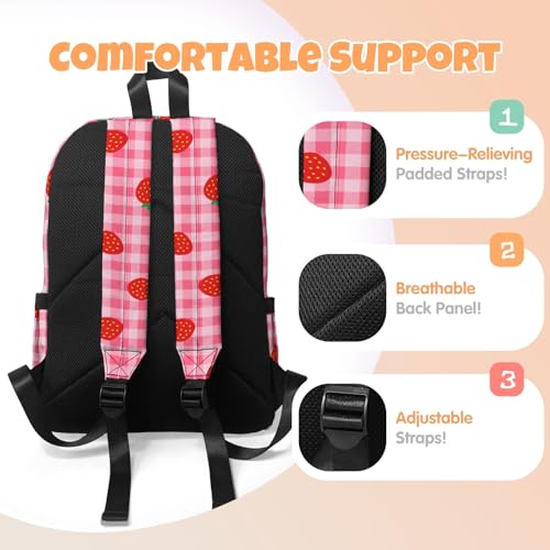 HOT ! Personalized Strawberry Backpack for School, Cute Fruit Pattern Printed Kids School Bag Pink Bookbag Backpack Set with Lunch Bag Pencil Case