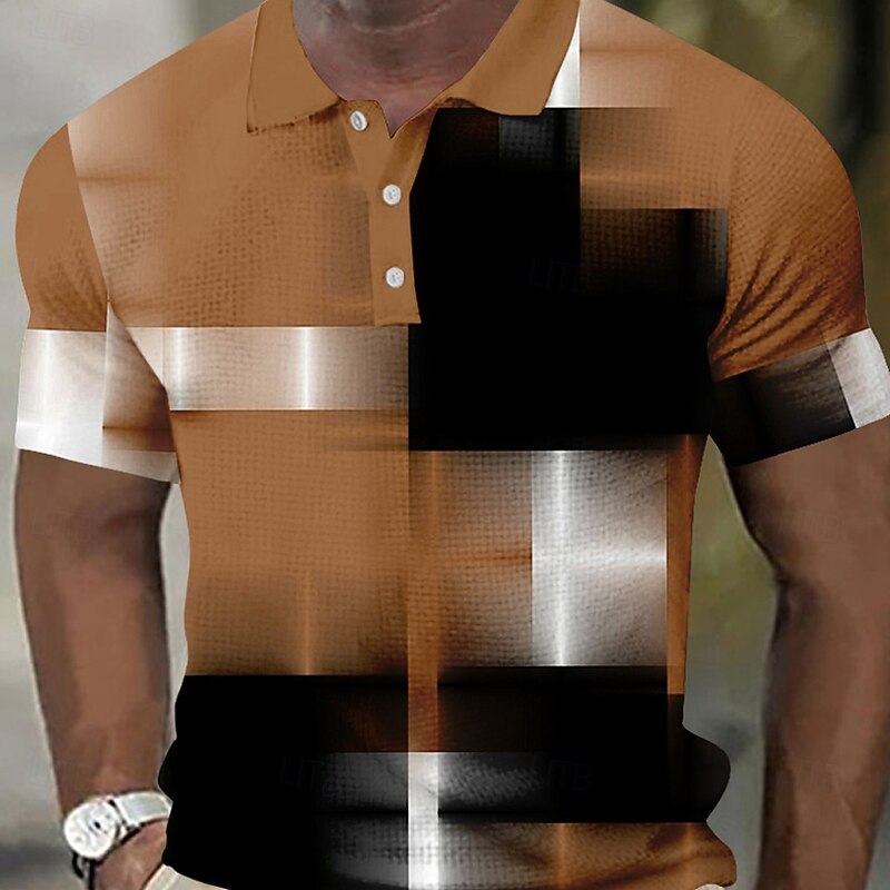 More information about Men's Geometic Waffle Polo Shirts Short Sleeve Polo Shirts Collared Shirts Business Casual Business Athleisure Daily Wear Buttons 3D Print Summer Blue Brown Light Blue