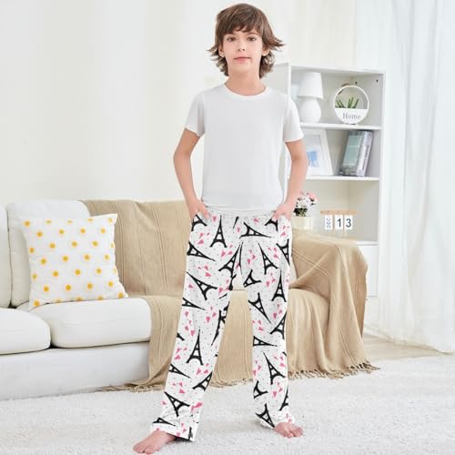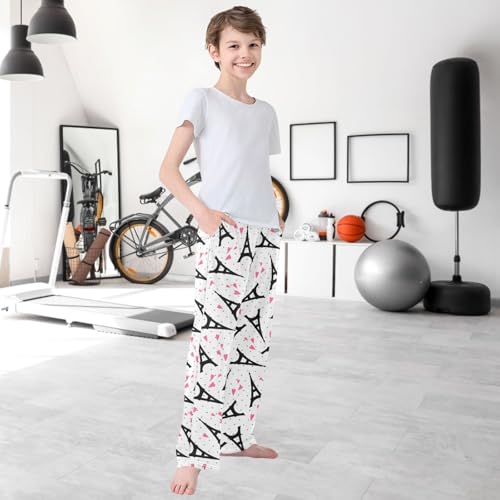 Boy's Lounge Pants Cartoon Eiffel Towl Pink Hearts Kids Jogger Pants Elastic Waist Long Bottoms with Pockets 6-14 Y 6
