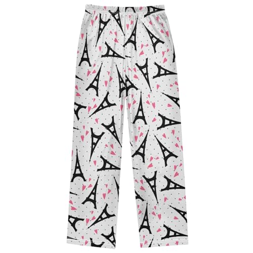 Boy's Lounge Pants Cartoon Eiffel Towl Pink Hearts Kids Jogger Pants Elastic Waist Long Bottoms with Pockets 6-14 Y 7