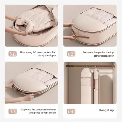 • Protect your clothes: Unlike other organisers, our Space Saving Hanging Garment Bag preserves the shape and fluff of your down jacket, preventing wrinkles and deformation. Keeps clothes tidy, clean and ready to wear next season