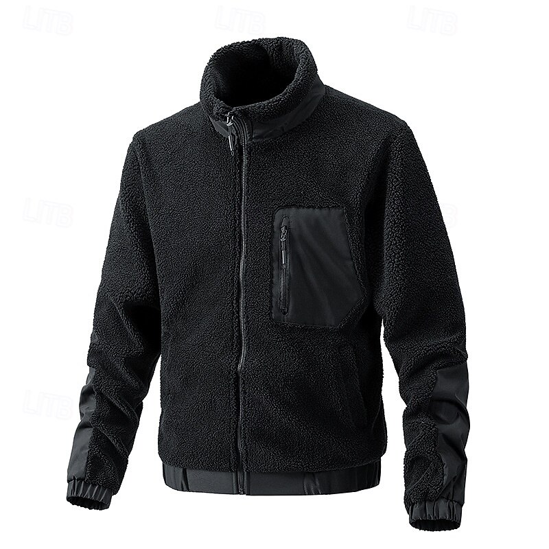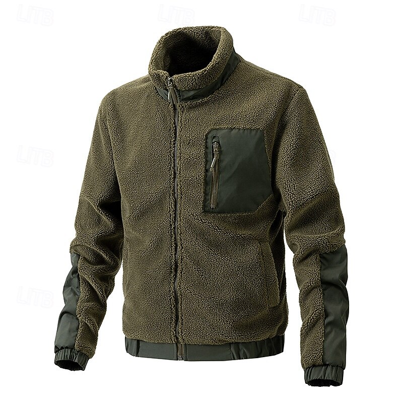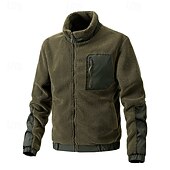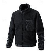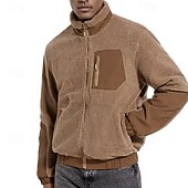 More information about Men's Fleece Jacket Casual Thermal Warm Plain Winter Solid Color Casual Stand Collar Regular Camel Black Navy Blue Army Green Jacket