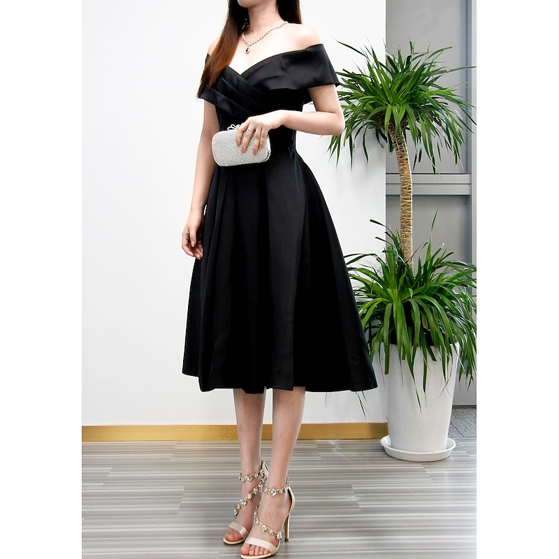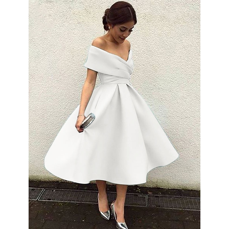 More information about Beach Wedding A-Line Cocktail Dresses Elegant Dress Wedding Guest Homecoming Tea Length Short Sleeve V Neck Stretch Fabric V Back with Pleats Dresses