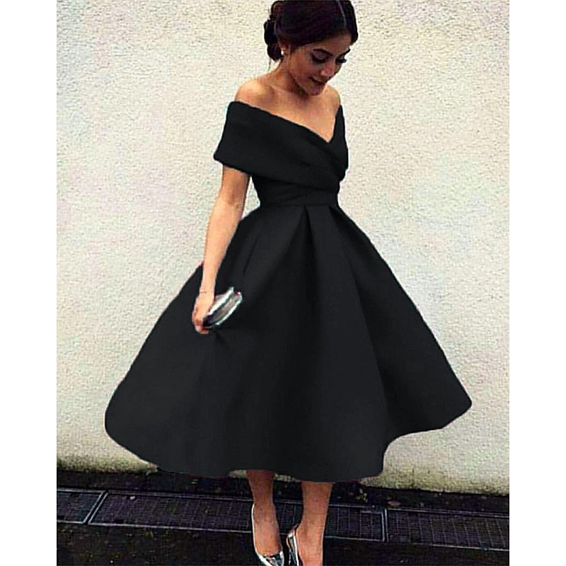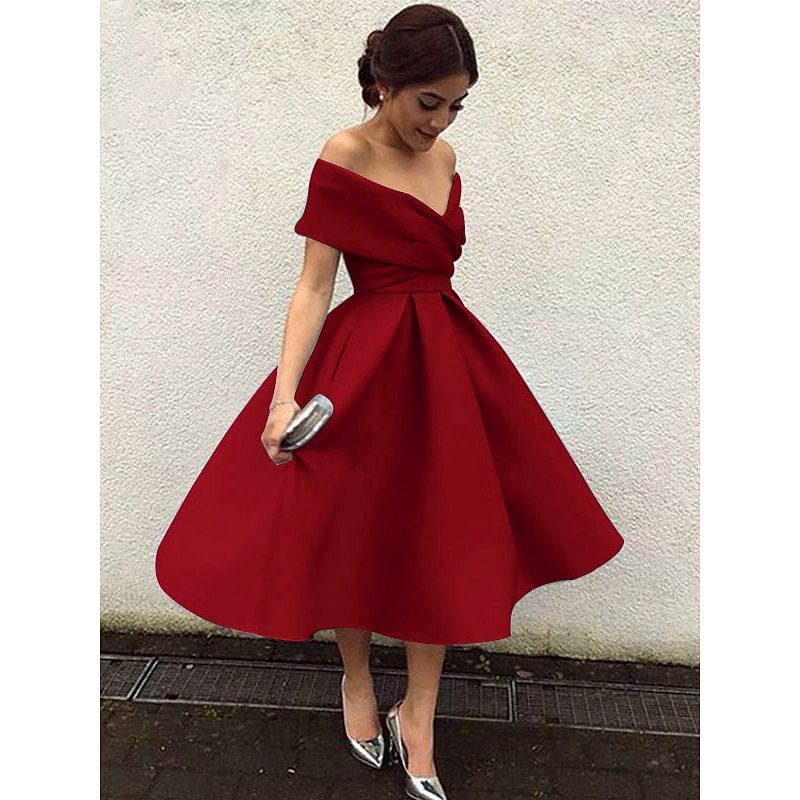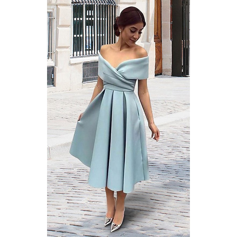 Beach Wedding A-Line Cocktail Dresses Elegant Dress Wedding Guest Homecoming Tea Length Short Sleeve V Neck Stretch Fabric V Back with Pleats Dresses 8