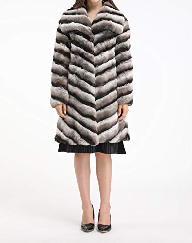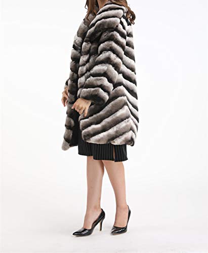 LVCOMEFF Women Genuine Rex Rabbit Fur Long Coat Chinchilla Color Plus Size with Big Collar 4