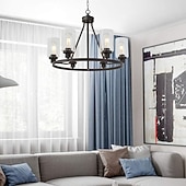 More information about Farmhouse Chandelier 6 Light 25" Black Truck Wheel Pendant Light Round Kitchen Island Lamp for Dining Room Kitchen Bedroom Living Room Foyer Hallway 110-240V