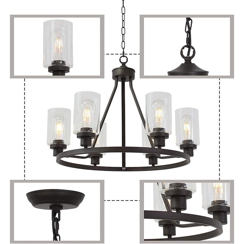 Farmhouse Chandelier 6 Light 25" Black Truck Wheel Pendant Light Round Kitchen Island Lamp for Dining Room Kitchen Bedroom Living Room Foyer Hallway 110-240V 8