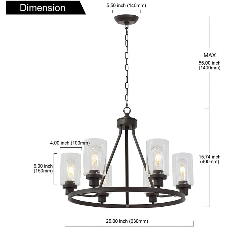 Farmhouse Chandelier 6 Light 25" Black Truck Wheel Pendant Light Round Kitchen Island Lamp for Dining Room Kitchen Bedroom Living Room Foyer Hallway 110-240V 7