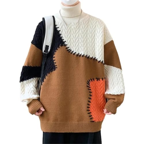 More information about Men's Loose Turtleneck Knit Sweater Casual Warm Patchwork Pullover Jumper