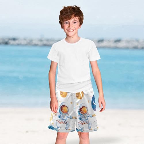 OREZI Boys Swim Trunk Shorts Astronaut Planet Bathing Suit for Toddler Kids 4
