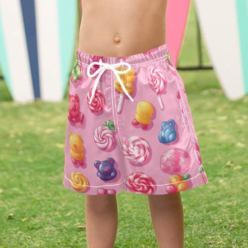 Pigsaly Boys' Swim Board Shorts Funny Colorful Lollipops Jelly Candy Bears Boy's Swim Trunks Kids Swimwear 5T 4