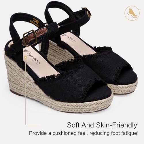 Vepose Women's 880 Wedge Sandals Peep Toe, 3.3" Inch High Heel Platform Espadrilles Sandals with Ankle Buckle 1