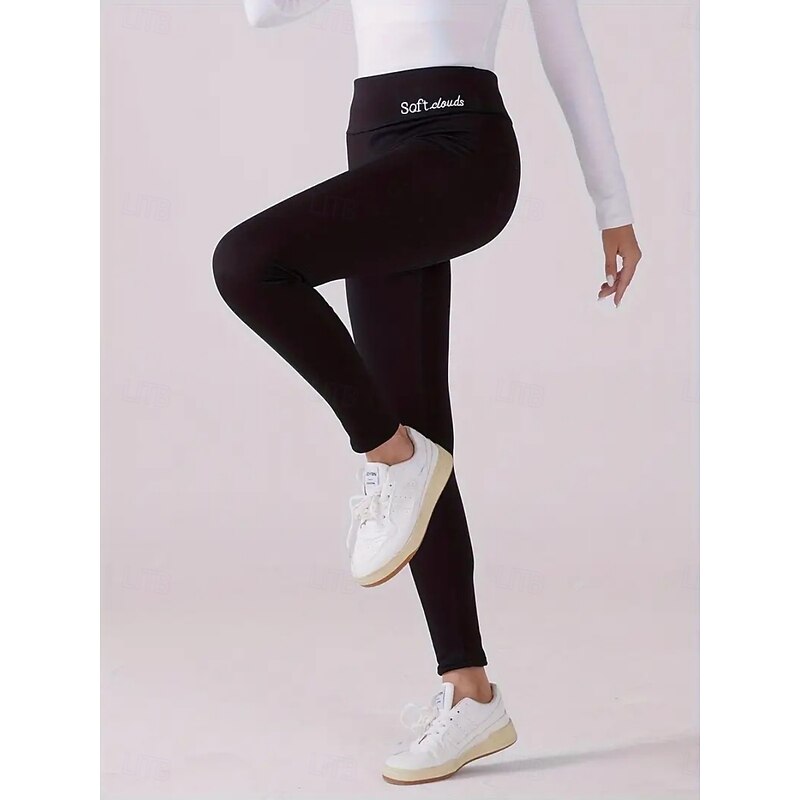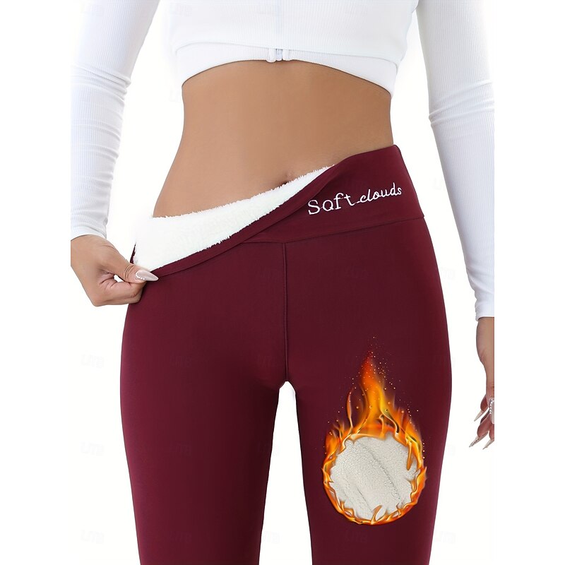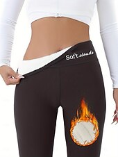 More information about Women's Fleece Pants Leggings Fashion Streetwear Basic Full Length High Waist Plain High Cut Comfy Soft Comfortable Stretchy Vacation Home Street Wine Navy Black Gray Spring Fall Winter Regular Fit