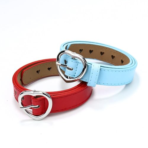 More information about Children's Punk Belt Student Boys and Girls Jeans Heart shaped Hollowed Out Heart Belt Female Pink Sky Blue