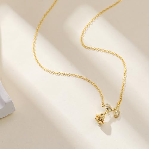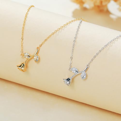 • PREMIUM QUALITY S925 STERLING SILVER MATERIAL: This stylish rose flower pendant Necklace is made of high quality 925 sterling silver material, then plated with 14K real gold, nickel and lead free, sturdy and durable. Never fade, rust or tarnish. The gold plated rose flower necklace will not turn your skin green, red or itchy.Ensuring long-lasting beauty