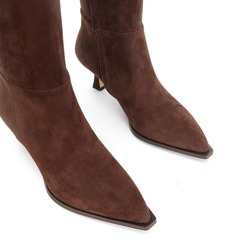 DOEYG Women Suede Knee High Boots Wide Calf Kitten Heel Boots Pointed Toe Stiletto High Heel Tall Boots Fashion Fall Long Boots with Side Zipper 5