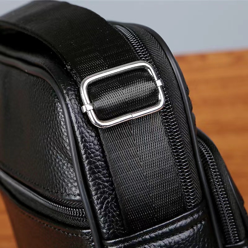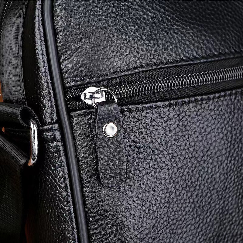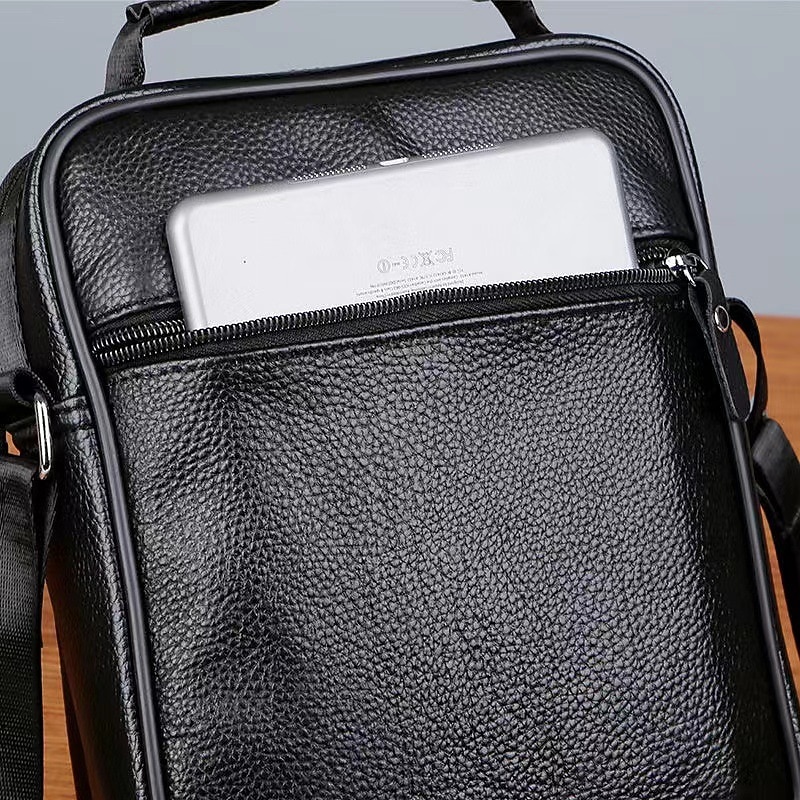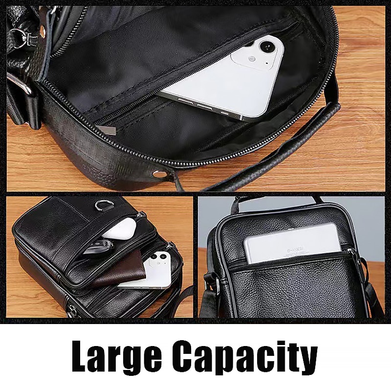 Men's Black Leather Crossbody Messenger Bag – Multi-Pocket Shoulder Bag with Zipper Closure for Work, Travel & Daily Use 11