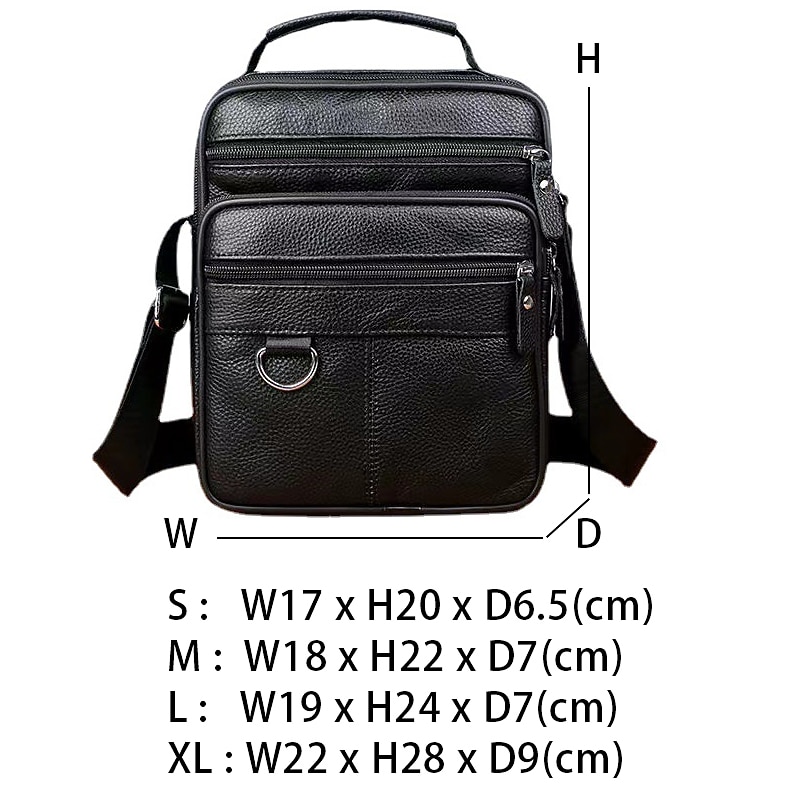 Men's Black Leather Crossbody Messenger Bag – Multi-Pocket Shoulder Bag with Zipper Closure for Work, Travel & Daily Use 19