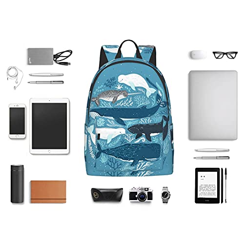 16 inch backpack Whales Laptop Backpack Full Print School Bookbag Shoulder Bag for Travel Daypack 6