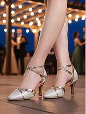 $54.99 - Women's Gold Glitter Ballroom Dance Shoes with Cross Straps, Closed Toe, Mid Heel - Professional Latin and Standard Performance Footwear for Competitions and Practice 2025. Shop for cheap Latin Shoes online? Buy at lightinthebox.com on sale today!