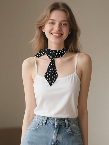 • Polka Dots Accessory for Women: white polka dots with black background, add feminine business look to dress shirt, blazers. With open-collar shirt or turtleneck for a relaxed, bohemian, or winter look. Works well with suits for a refined, vintage-inspired style