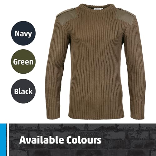 • CREW NECK JUMPER - Fort's Crew Neck Combat Jumper is a comfortable jumper made from 100% Acrylic. This is a cosy, thick jumper that features a heavyweight 7 gauge knit to provide extra warmth and durability. This NATO Style jumper features epaulettes, elbow patches and shoulder patches. (Size: Small, Colour: Green)
