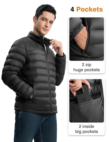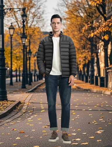TBMPOY Men's Lightweight Packable Puffer Winter Jackets Puffy Water-Resistant Bubble Insulated Coat for Travel Ski Hiking 5