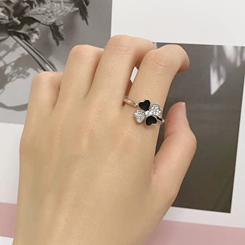 HOT ! Four-Leaf Clover Fidget Spinner Rings for Women Sterling Silver Plated CZ Heart Flower Anxiety Rotate Freely Inspirations Stress Relief Open Stacking Finger Ring Eternity Promise Love Statement Fashion Cubic Zirconia Jewelry Gifts Birthday St Patrick's Day Daughter