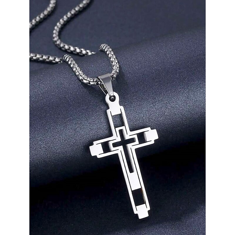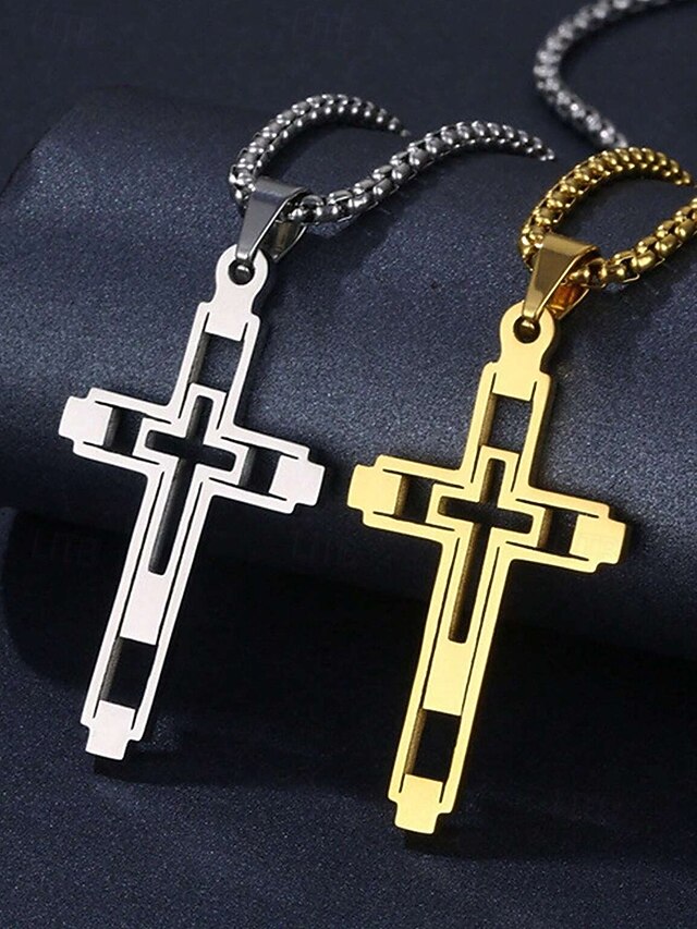 $9.99 - Men's Dual-Tone Stainless Steel Cross Pendant Necklace – Silver and Gold Finish, Modern Religious Jewelry 2025. Shop for cheap Men's Jewelry online? Buy at lightinthebox.com on sale today!