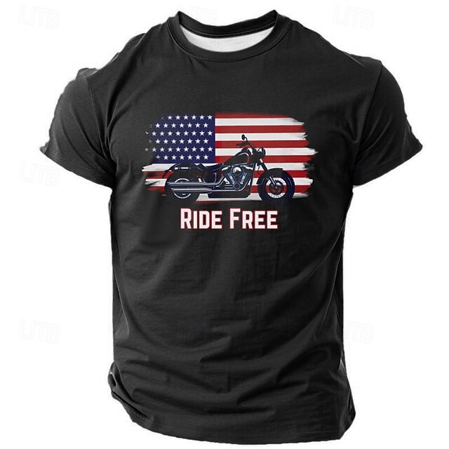 More information about Veterans Day Men's Patriot Patriotic Veteran Keep Calm & Ride On T shirt Short Sleeve T shirt 3D Print Crew Neck Shirt Fashion Athleisure Street Sports Outdoor Daily Black Blue Green Summer Spring