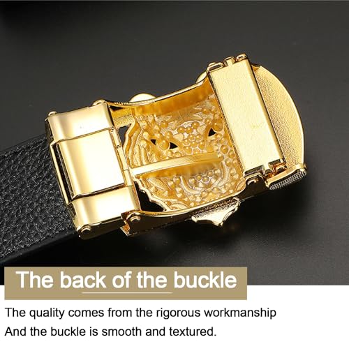 More information about Luxury Men's Belts Gold Tiger Head Automatic Buckle Alloy, PU Leather Men Waist Strap, Slide Easier Adjustable Belt, Cut To Fit, Men Dress Casual Ratchet Belt (49in)